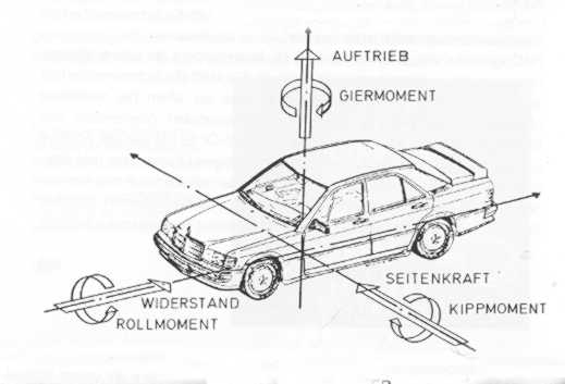 und Abbremsen wirkt, sowie die Querbeschleunigung, die Kraft die bei Kurvenfahrt