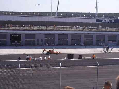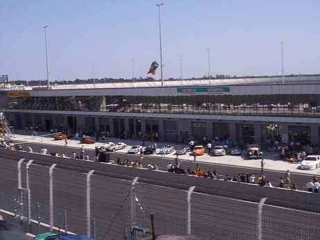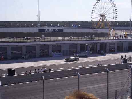 Die Oranisatoren gaben sich sehr viel Mühe eine große Anzahl von Besuchern anzulocken, was Ihnen ohne Zweifel gelang. An diesem Wochenende sollten 80.000 motorsportbegeisterte die neue Rennstrecke in Augenschein nehmen. Positiv war natürlich, daß der Eintritt frei war. Die Veranstalter präsentierten alle Rennserien angefangen beim VW Lupo-Cup über den Porsche Carrera-Cup bis hin zur GT Serie. Die Krönung bildeten Demonstrationsrunden der Formel 1 Fahrzeuge (historische ab 1976) sowie der Champcar´s, die auf dem Oval (11 km) Ihre Highspeedrunden absolvierten. Beeindruckend an dieser Rennstrecke ist die fast hundertprozentige Übersicht über die gesamte Einrichtung von allen Plätzen aus. Ebenso sind die Tribünenplätze sehr zu empfehlen, hier haben bis zu 25.000 Fan´s Platz und können das Geschehen in den Boxen aus nächster Nähe betrachten. |