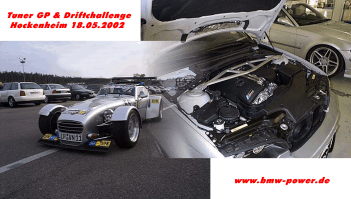 Natürlich waren wir gespannt, welche Hochkaräter an BMW Tunern vor Ort sein würden. Leider mussten wir feststellen, dass bis auf die Firma AC Schnitzer, MST Wiesmann und MK Motorsport keine namenhaften Veredler präsent waren. Die Firma AC Schnitzer brachte einen 295 PS starken BMW Compact und ein M3 E46 Coupe an den Start. Die Firmen MK Motorsport und MST Wiesmann waren mit je einem E46 M3 am Start, wirkten aber im direkten Vergleich mit der Konkurrenz, deplaziert und wenig engagiert. Die Rundenzeiten waren von allen BMW´s enttäuschend. (1.16.xx min) Die Krönung in negativer Hinsicht war jedoch ein M Coupe der Firma GH Motorsport, was katastrophale Rundenzeiten realisierte und dessen Fahrer offensichtlich überfordert schien und sich mehr neben als auf der Strecke befand. Trotzdem war Hockenheim eine Reise Wert, da man hautnah die Boxenarbeiten und die Tunerszene studieren konnte. Schnellstes Tunerfahrzeug war der Gemballa Porsche Turbo. Stärkstes Fahrzeug war ein 704 PS starker Porsche Turbo. Wegen der geringen BMW Beteiligung am GP sind auf unseren Foto´s eine Vielzahl schöner Porsche zu sehen. Auch die Marke Audi war stark vertreten. Bei der Driftchallenge, bei der auch private Starter zugelassen waren, fanden sich viele BMW vom 3200 CS bis zum E36 M3 GT, wenigstens hier wurden die weiß blauen Fahnen hoch gehalten. Wir hoffen auf Besserung der BMW Tuner im nächsten Jahr. Text: Tim